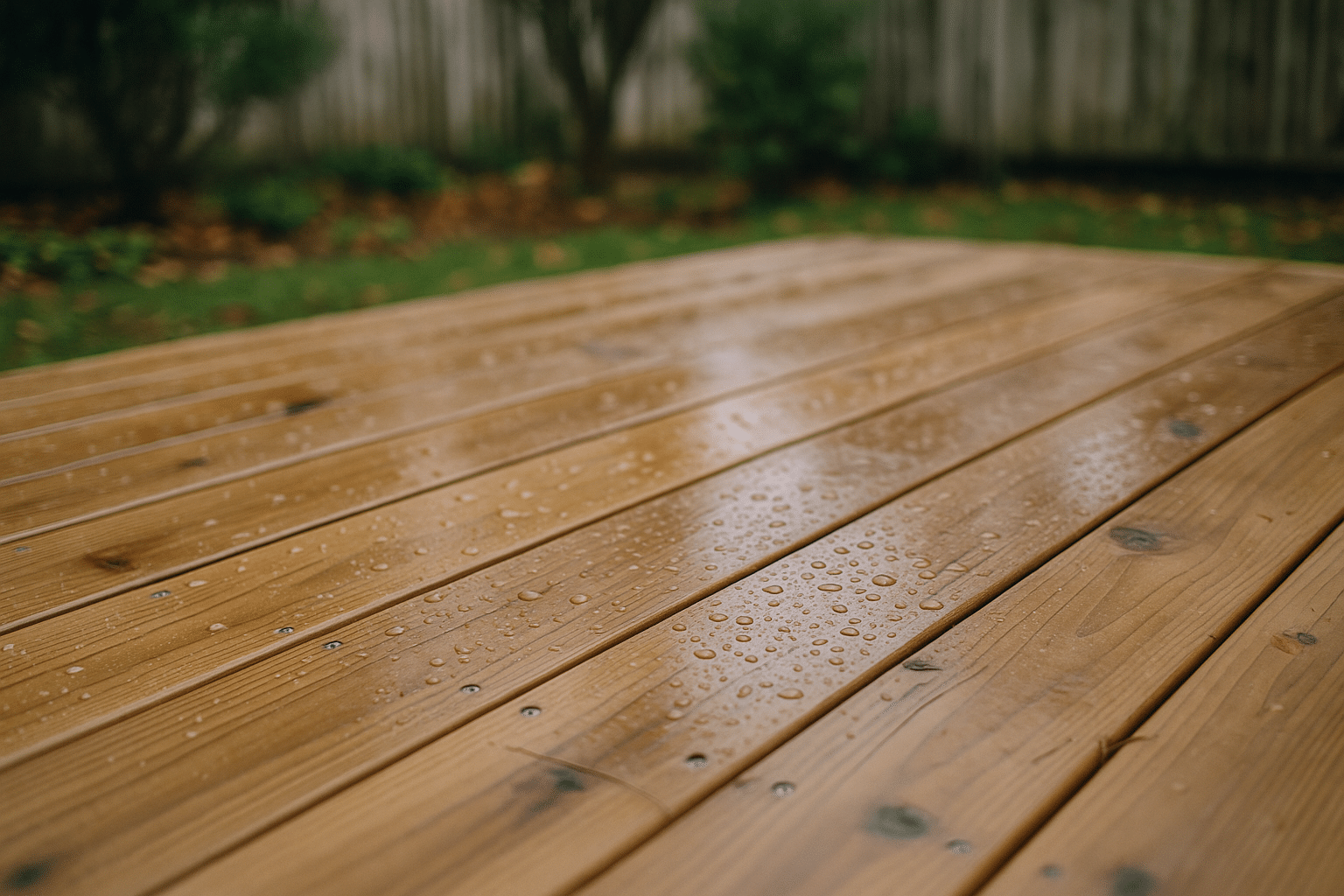 – Spring: Inspect for loose fasteners, raised grain, and drainage issues; wash pollen and debris.